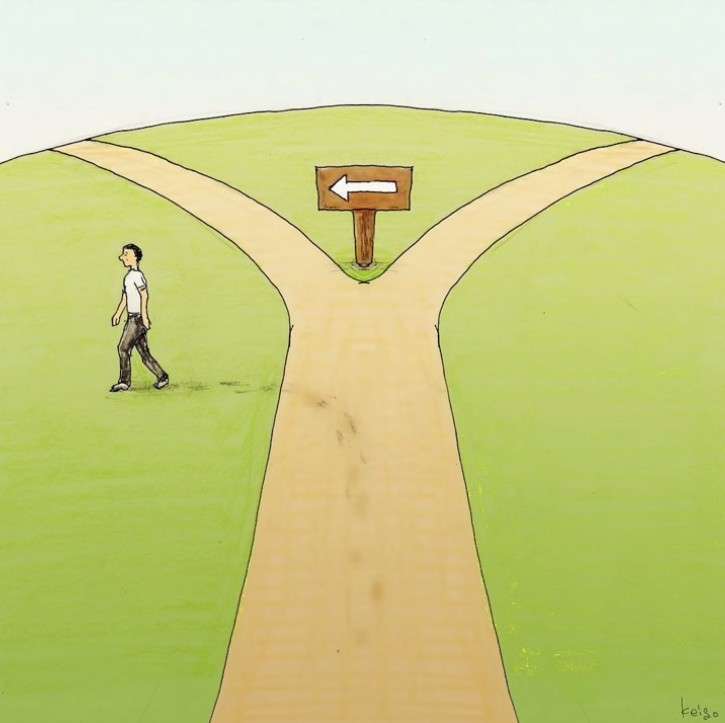 ▼而他自己最喜歡的一張作品,就是這一張分岔路的圖。他表示有時候人不一定要走在設定好的道路上,偶爾走歪路也是很有趣的!
