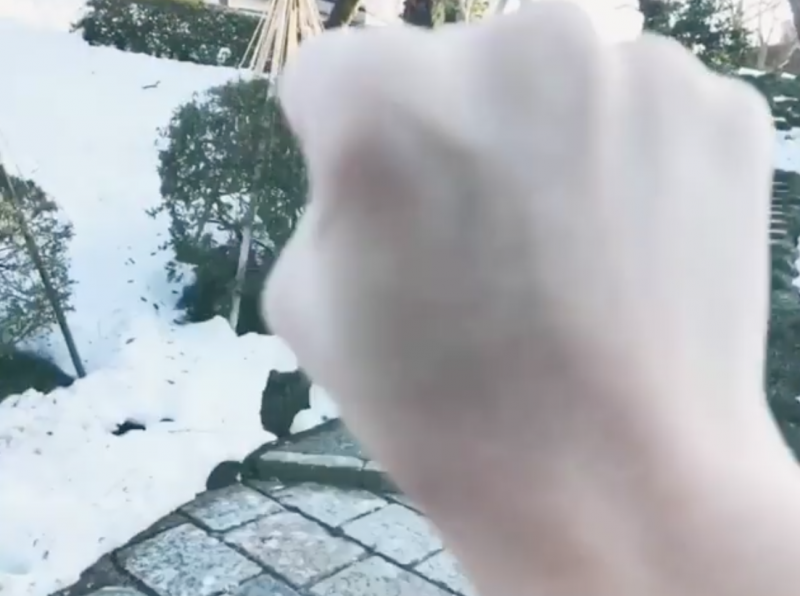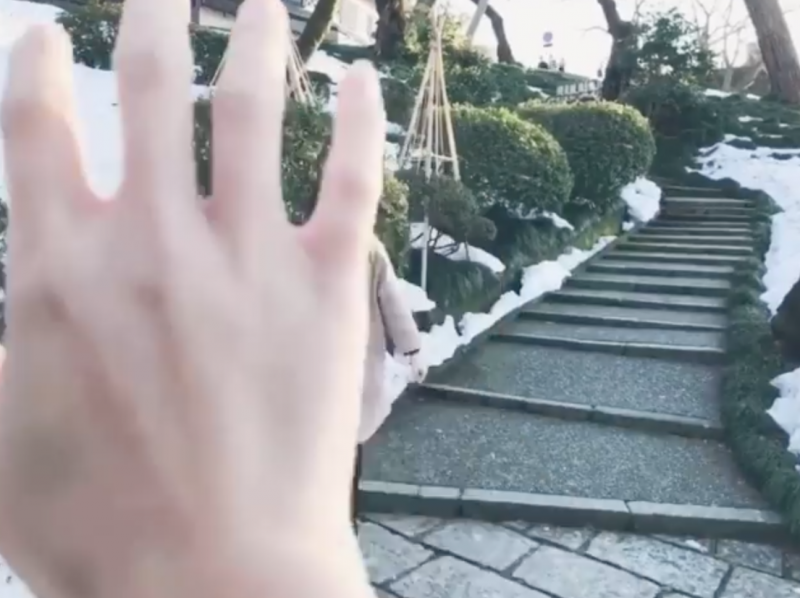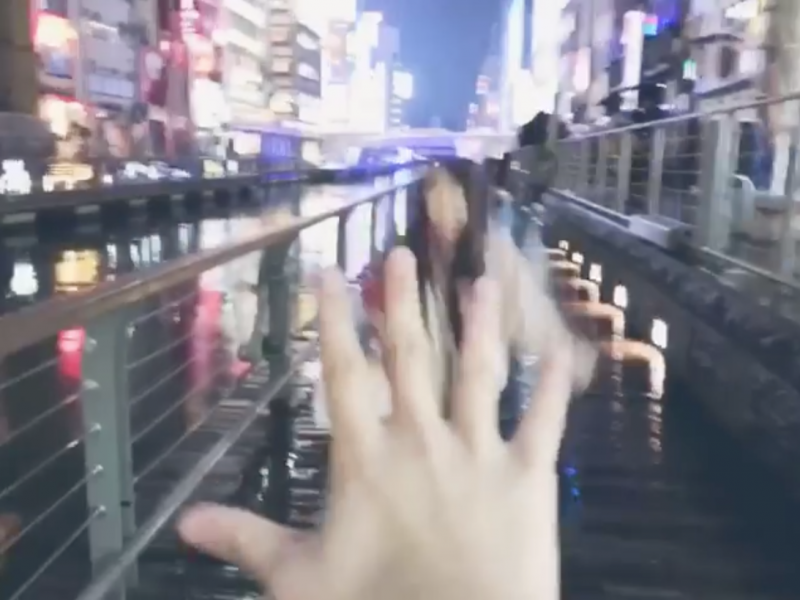 ▼把手伸進去鏡頭裡,放在主角的身上,然後做「收」的動作,直接往後蓋鏡頭。