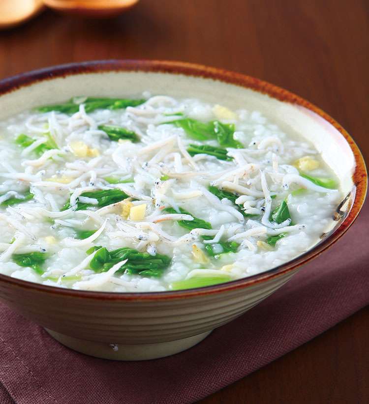 ▼吻仔魚和蔬菜搭配做成的清粥營養豐富、香氣逼人,看一眼就垂涎三尺。