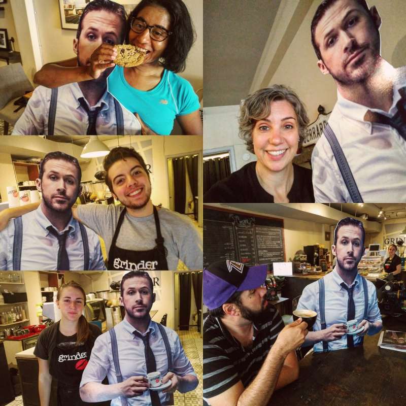 ▼Joelle Murray為了吸引男神來到自己的咖啡廳開始了一個大膽的計畫,她製作了一個萊恩葛斯林的展板,並且在社群網站上請求大家的支持。