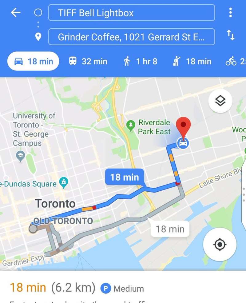 ▼Grinder咖啡廳距離多倫多電影節大約20分鐘車程。