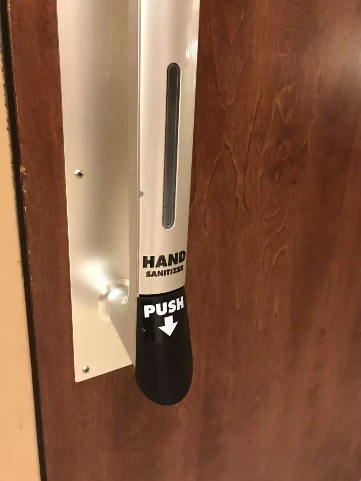 ▼公共廁所的門把手結合了消毒酒精,開門的同時給手消毒。
