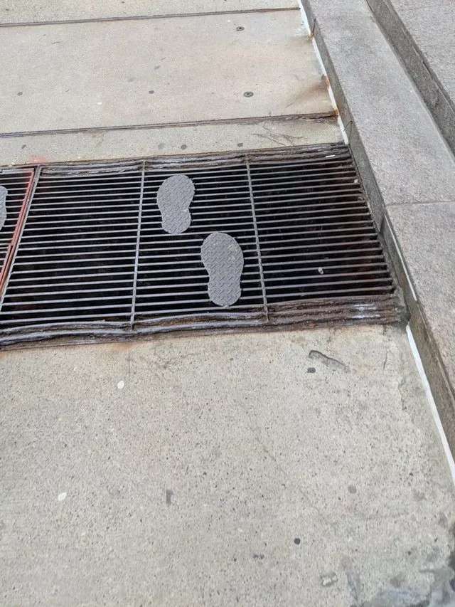 ▼水溝蓋上的腳印設計,穿高跟鞋也不會陷進去。