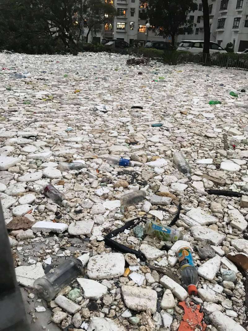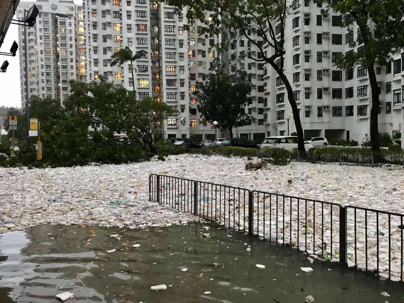 2018年09月18日颱風山竹離開香港後,街道上到處一片狼藉。一名網友更是上傳了滿地都是海洋垃圾的照片,震撼的畫面讓許多人都忍不住感嘆:「這是海洋的報復」。許多塑膠寶特瓶、保麗龍盒等難以分解的製品都是從海洋吹回到陸地上⋯