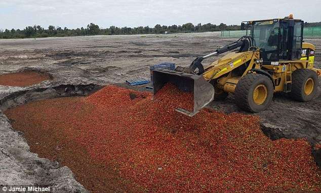 ▼來看看這段令人痛心,銷毀草莓的畫面吧: