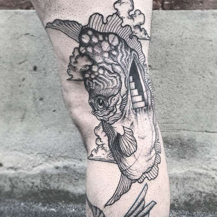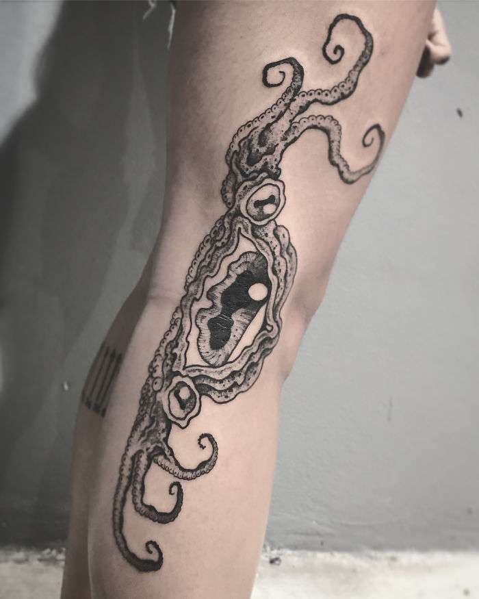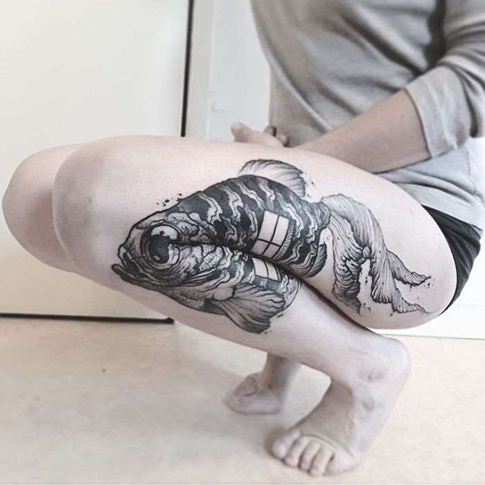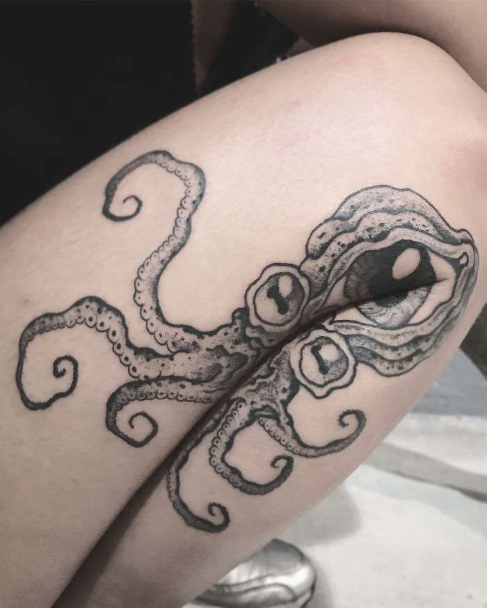 刺青藝術家們發明了一種新的刺青方式,通過巧妙的佈局,在人體四肢的關節處或者褶皺處,隱藏部分設計,從而產生錯位的視覺效果,手法堪比魔術師,刺青師Vek Van Hillik就是其中的一位。