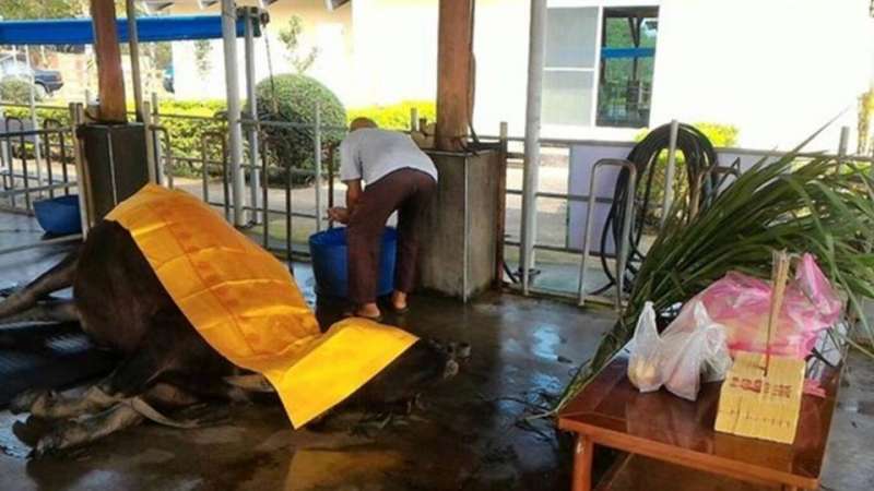 117歲老牛用力撐到「見老主人最後一面」 他哭著蓋上黃布:投胎到好人家去吧