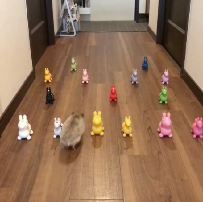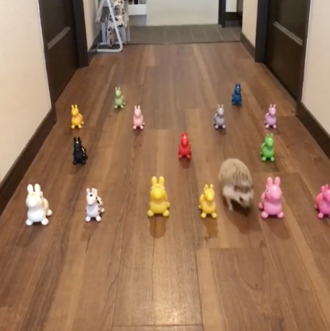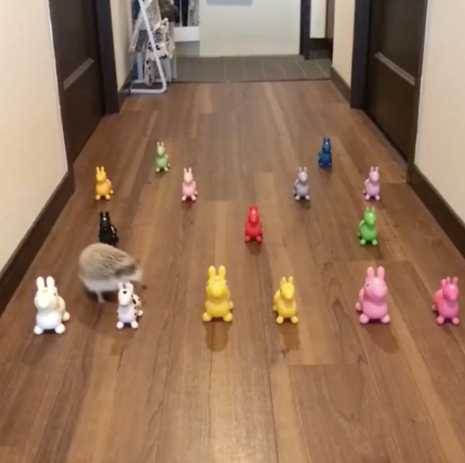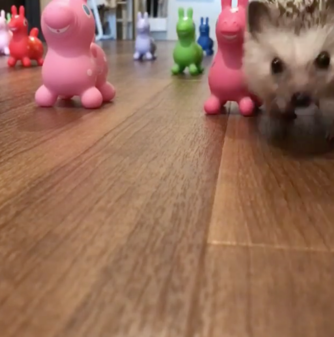 刺蝟也想當短跑選手啊~日本網友hisa.1018養了一隻刺蝟寶寶「虎太郎」,牠的日常遊戲就是在家裡跟「小Rody跳跳馬」一起玩,只要把它們擺在地上,虎太郎就會開啟花式快跑模式!呆萌的臉配上快速的腳程,網友都忍不住直呼:「我被萌哭了啦~」