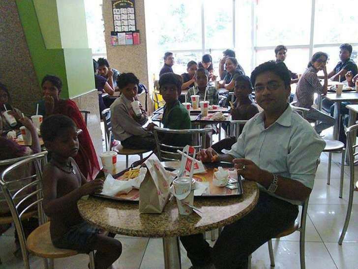 ▼男子帶著自己的第一份薪水和14個貧困兒童來麥當勞就餐。
