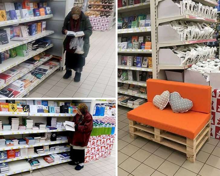 ▼這位老太太常常來商店讀書,經理特意為她安裝了沙發座。