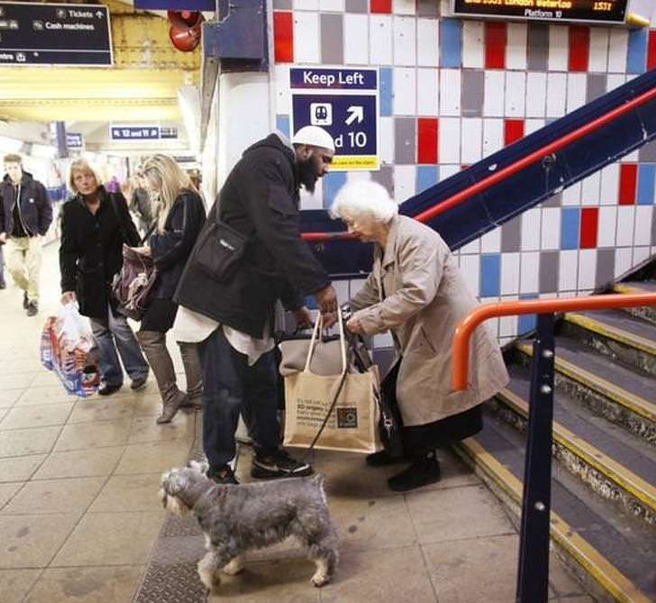 ▼男士為了幫助老奶奶提包、下樓梯錯過了自己的列車。