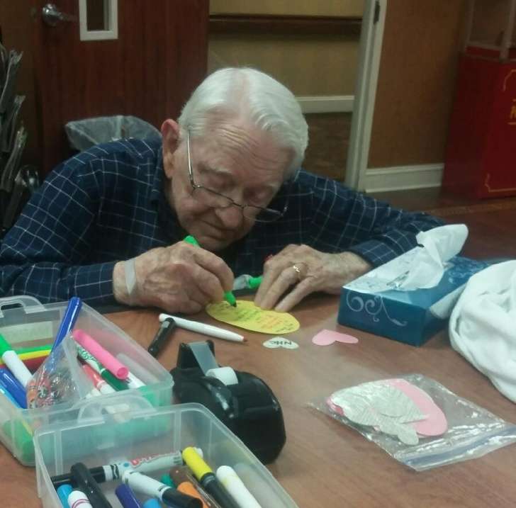 ▼92的祖父親手為93歲的祖母製作生日賀卡。