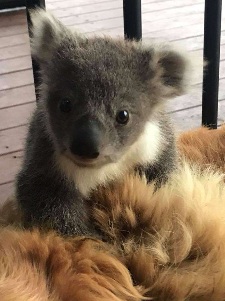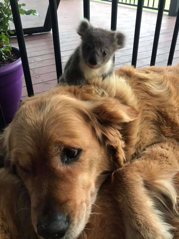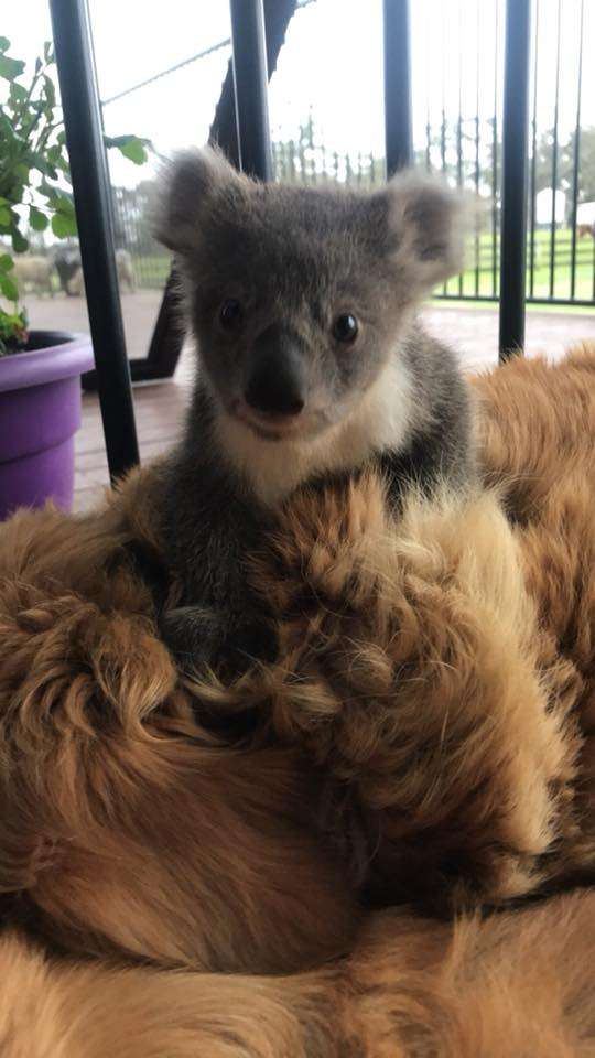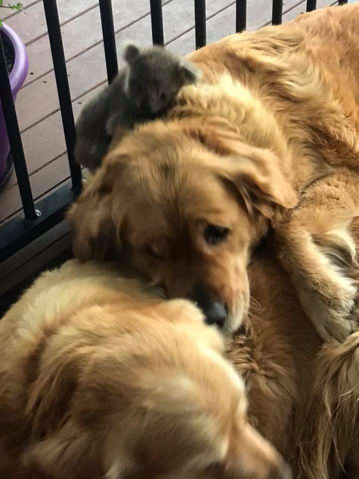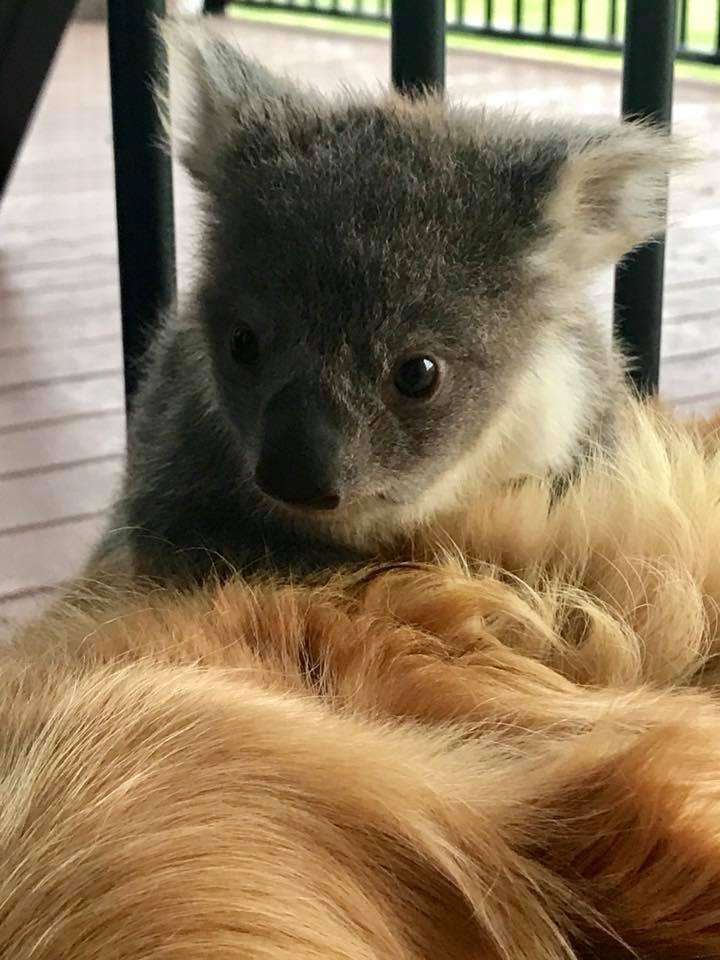 2018年09月29日無尾熊寶寶的生命竟然被一隻黃金獵犬救回!這件事就發生在45歲的澳洲女子Kerry McKinnon的家門外,她正奇怪怎麼愛犬Asha會待在門口時,下一秒就看到另一隻生物在牠的身上,那竟然是一隻無尾熊寶寶!