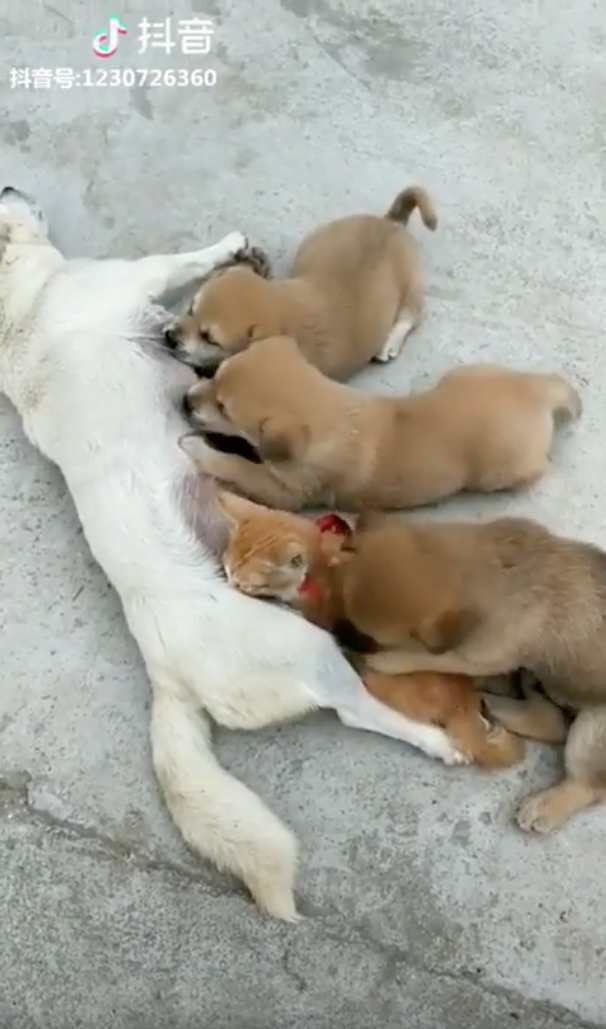 2018年09月29日肚子餓壞了?一隻橘貓竟然霸道地佔走小狗的喝奶位置,完全無視牠的抗議,只顧著喝白狗媽媽的奶!小汪汪當然不會傻傻看著牠喝啊,又拖又拉的就是要把那隻橘貓趕走,只是我們都知道結局當然不會照牠的劇本演⋯