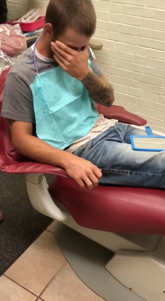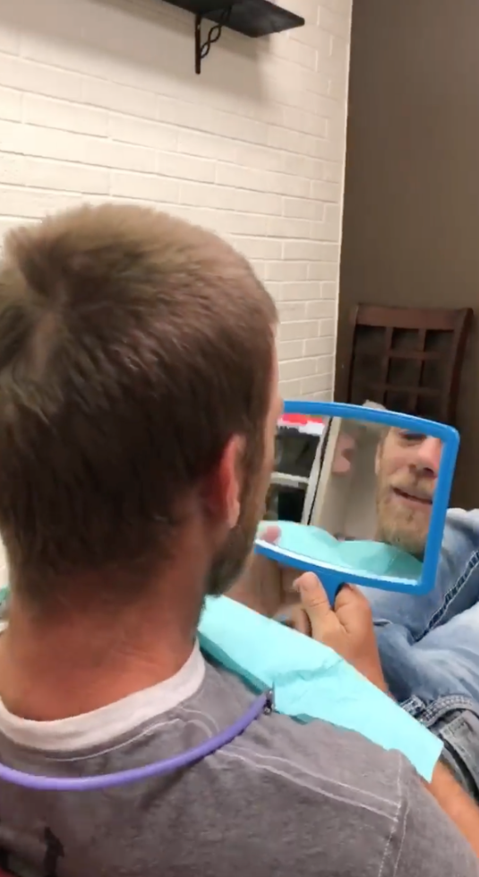 從來不敢露齒微笑的男子,因為暖心牙醫堅守承諾而終於完成補牙。美國牙醫Kenny Wilstead在看臉書時,發現一名父親Dillon Moore沒有露出笑容的照片,好奇追問了才知道原來他有一口爛牙,左右兩旁甚至有4顆已經出現黑洞的爛牙。
