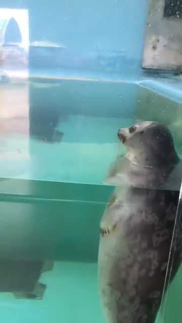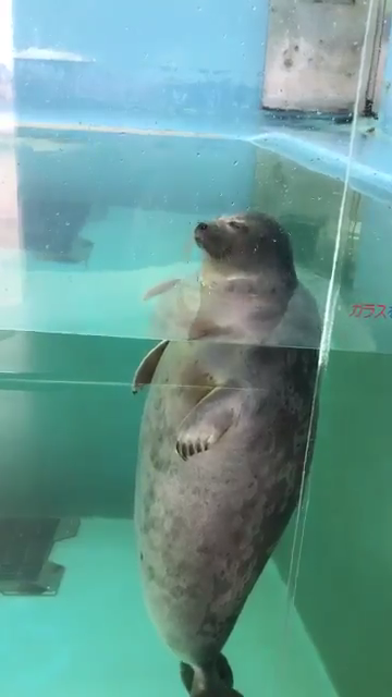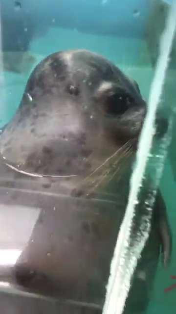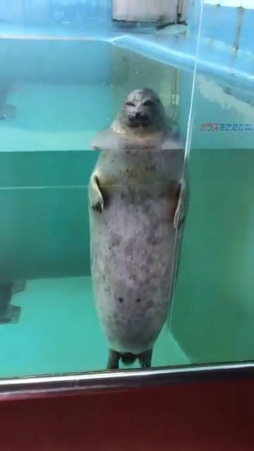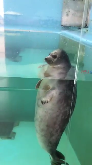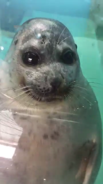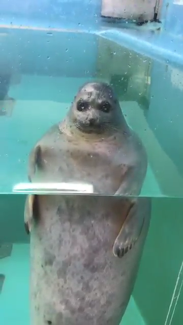 日本小樽水族館裡面驚見一隻站立不動直盯人看的海豹,陰森森的模樣跟電影鬼修女有87%像,網友錄下該段影片在Twitter趣道:「我很害怕。」不管網友往左往右,海豹的一雙大眼都直勾勾的盯著他,但其實仔細一看,海豹大大的眼睛其實超級卡哇伊的,影片中網友一靠近拍攝,海豹竟然害羞得不敢直視,還玩起自轉一圈的把戲,完全看不到剛才漠然直視的身影阿!