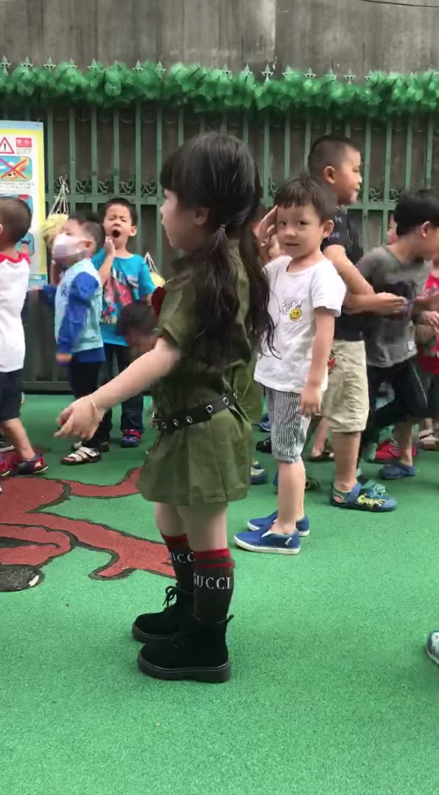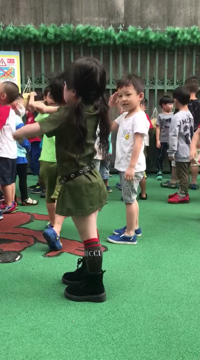 2018年10月03日3歲萌妹穿上軍裝服氣場不得了!一名網友很開心女兒蜜蜜成功變身軍裝小女神,看到她在幼稚園跳晨操時就忍不住拍下來,上傳到網路分享。影片中還可以看到男同學都被她吸引住,靦腆的靦腆、直接的直接,讓大家看到小孩最天真可愛的一面。