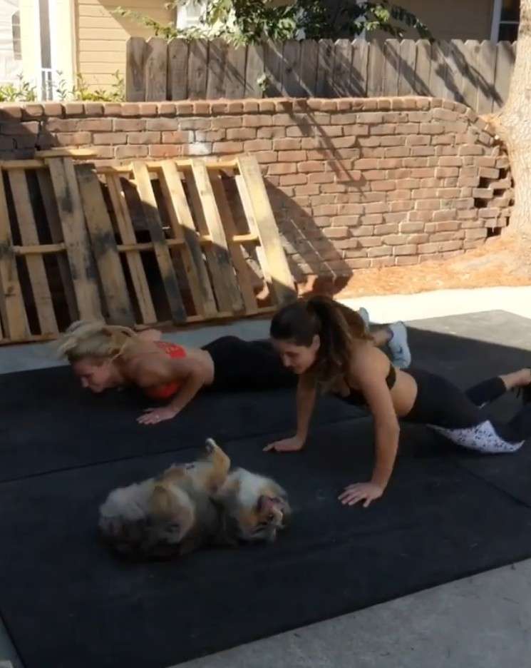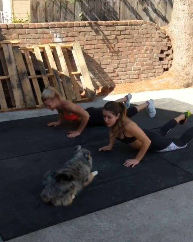 有那麼可愛的狗狗陪在身旁一起運動,相信這兩位正妹一定更有動力進行運動了,難怪她們能夠保養得那麼好,看來狗狗絕對功不可沒呢!