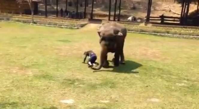 野生人類撂倒主人! 大象一路急奔救駕:泥泥泥...沒事吧?