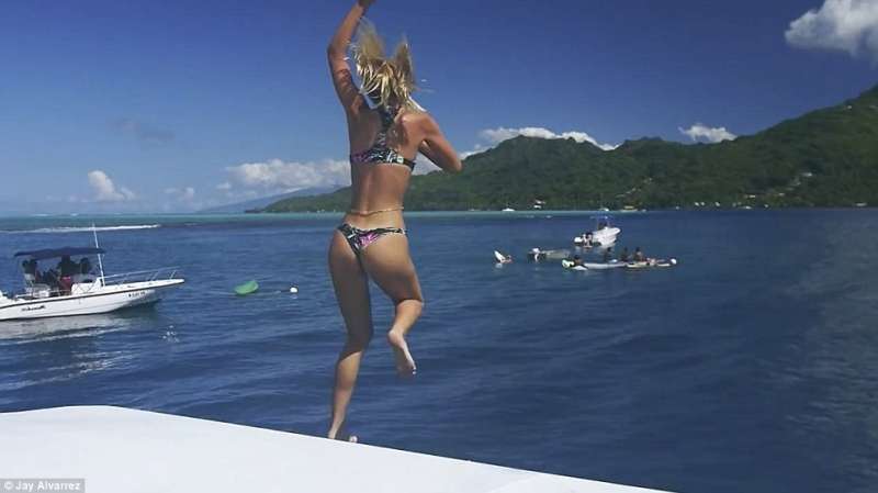 ▼阿麗克斯一躍如海的瞬間,模特兒的身材超優越。