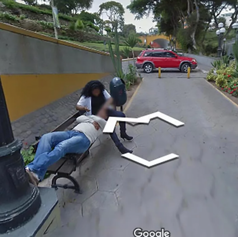 2018年10月12日夫妻離婚的原因竟然是因為Google地圖上的照片?秘魯一名男子在使用Google地圖的街景服務時候,居然看到一個很眼熟的女人坐在長凳上,拉近一看就認出她就是自己的太太!下一秒視線往下移,她的大腿上竟然躺了一個陌生男人⋯