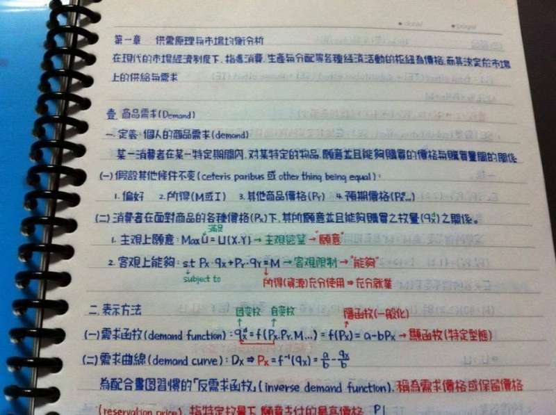 ▼從筆記的內容可以看到裡面有著各種不同的科目,原po也利用不同顏色的原子筆來做記錄,仿佛賦予了筆記本不一樣的生命!