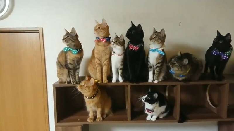 ▼看到9隻貓咪一起轉頭的畫面,是不是也感覺超可愛的呢?