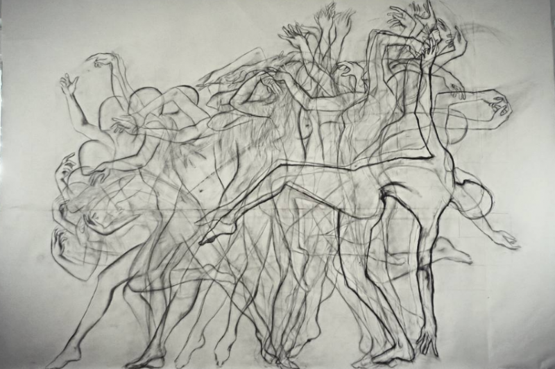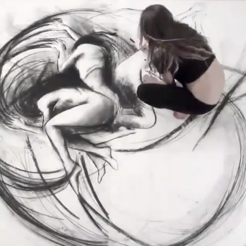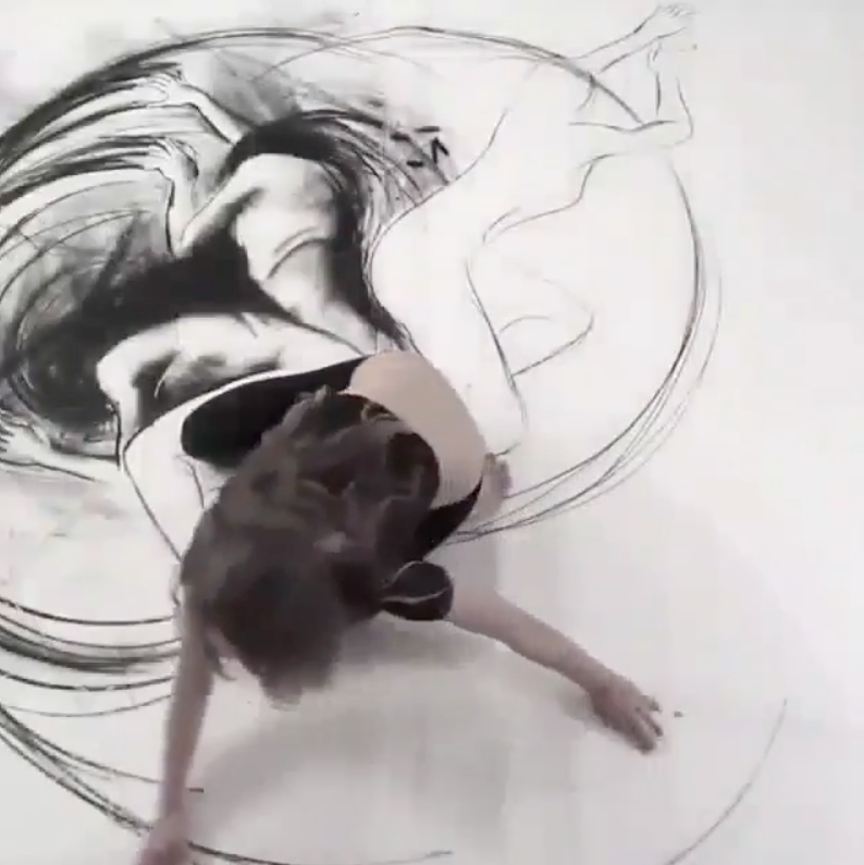 ▼雖然是平面的創作,但是Zarah最後的成品卻讓人看到一個動態的視覺。她利用畫筆將自己的身體姿態完整紀錄下來,整個編排到最後竟然變成身體舞動中的姿態,非常優美。