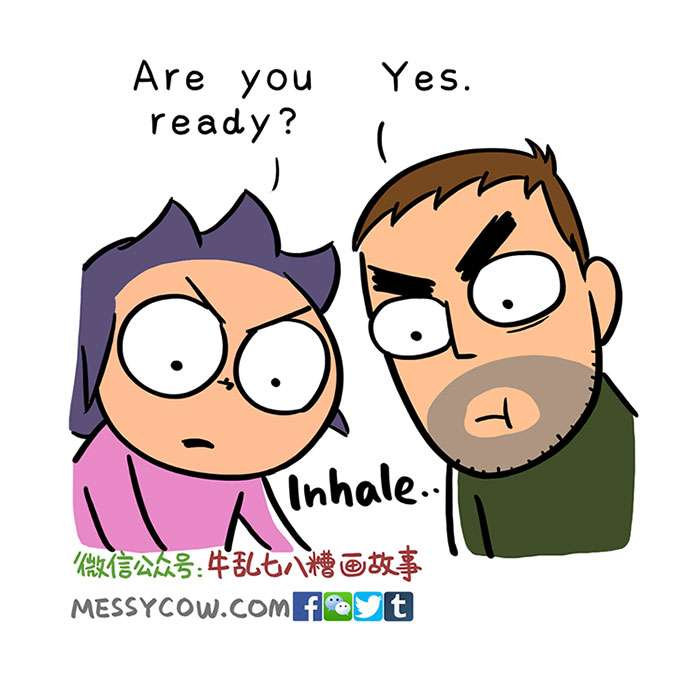 ▼牛媽:「準備好了嗎?」、牛爸:「準備好了!來吧!(深呼吸閉氣)」