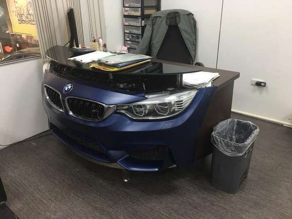 貼文引起廣大網友紛紛驚訝留言,「自己改裝的嗎,拼裝可不行,小心被開單XD」、「好帥的辦公桌,要記得定期打蠟哦!」、「忘記掛牌了」、「可以訂購或割愛嗎?」、「開始大量販售 賺到了錢 然後買一台真的M4」、「你是拆了哪位客人的車啊」,能夠做出這樣一張桌子,不論是創意還是手藝都是十足的真功夫!小編相信過不久原PO一定能夢寐以求,不再乾過癮,買來一台真正的BMW!