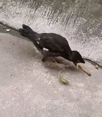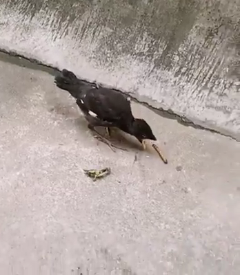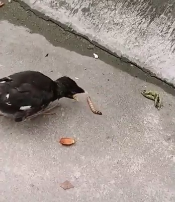 動物在小時候總是特別天真可愛,一隻小八哥似乎還沒發現自己長大了這件事,發現路上有一隻蟲蟲,便張著嘴嘴跟著牠不放,似乎覺得只要張開嘴巴,蟲蟲就會自己跑到嘴巴裡了,呆萌的模樣笑翻一片網友。