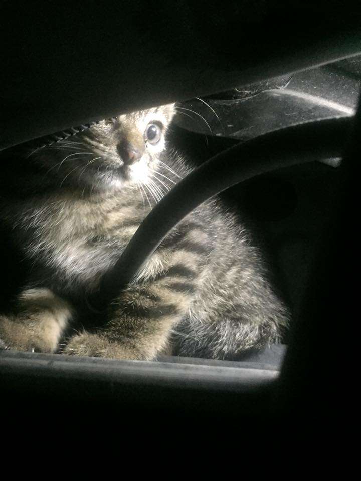 ▼最後真的在車底下發現了小貓的蹤影,原來牠早已趁著原po老公停車時跳了上來,經過那麼久的時間和路程卻仍未離開。