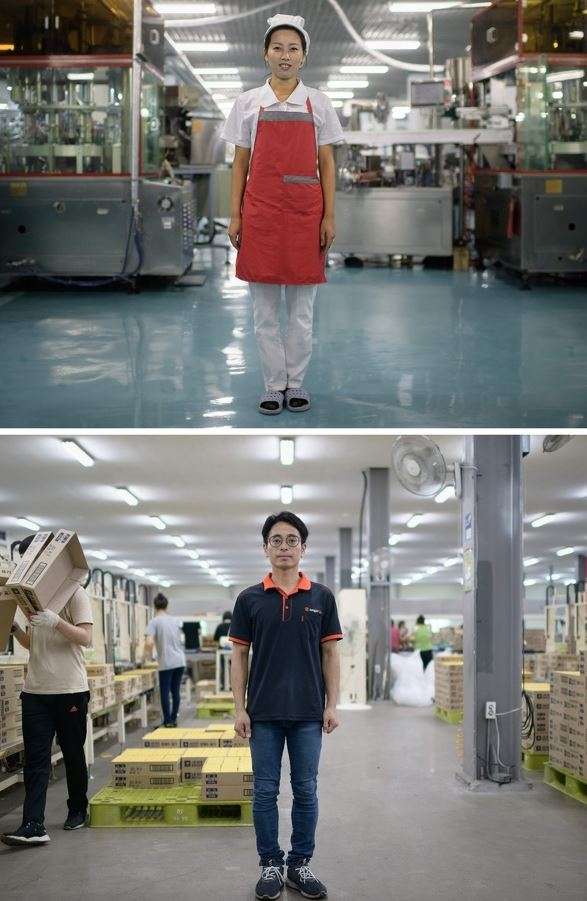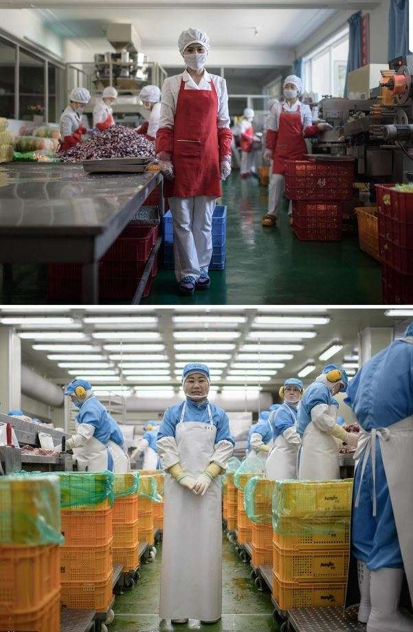 ▼北韓牙科設備工廠的員工與南韓包裝廠的員工。