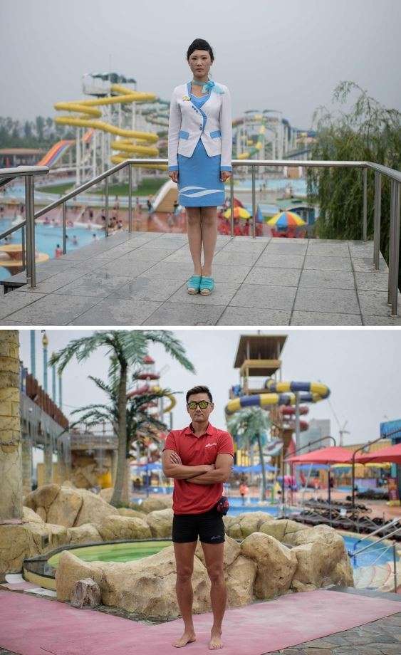 ▼平壤文秀水上樂園的工作人員與南韓水上樂園救生員。