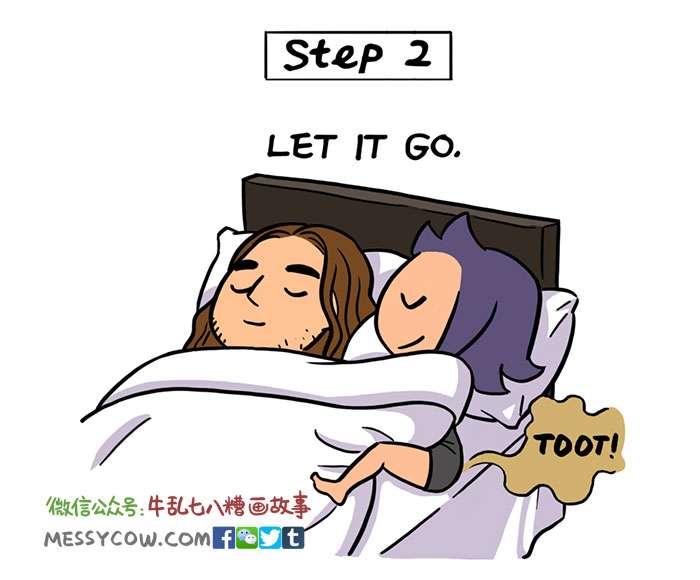 2018年10月16日當一段戀情逐漸穩定之後,情侶間住在一起是非常正常的事。不過正所謂「相處容易同住難」,兩個生活習慣不一樣的人住在一起,一定會有一段適應期,如果在晚上同床時突然想要放屁該怎麼辦呢?來自中國的漫畫家「牛亂七八糟畫故事」就在網路上分享了情侶之間的「放屁教學」,大家一起來學習吧: