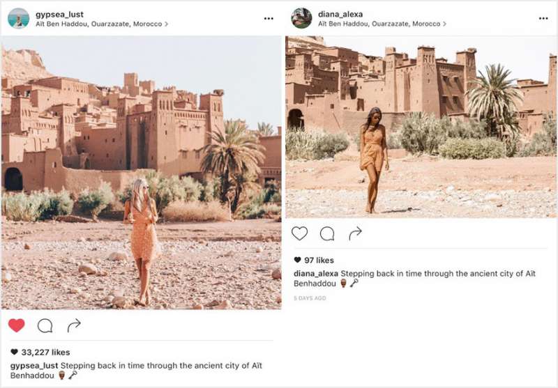 2018年10月16日Jack Morris和Lauren Bullen是一對熱愛旅行的情侶,他們常常在IG上分享自己的旅行經歷。在IG上擁有超高人氣的他們發現了一件超「詭異」的事,有人在偷偷模仿他們的旅拍作品。
