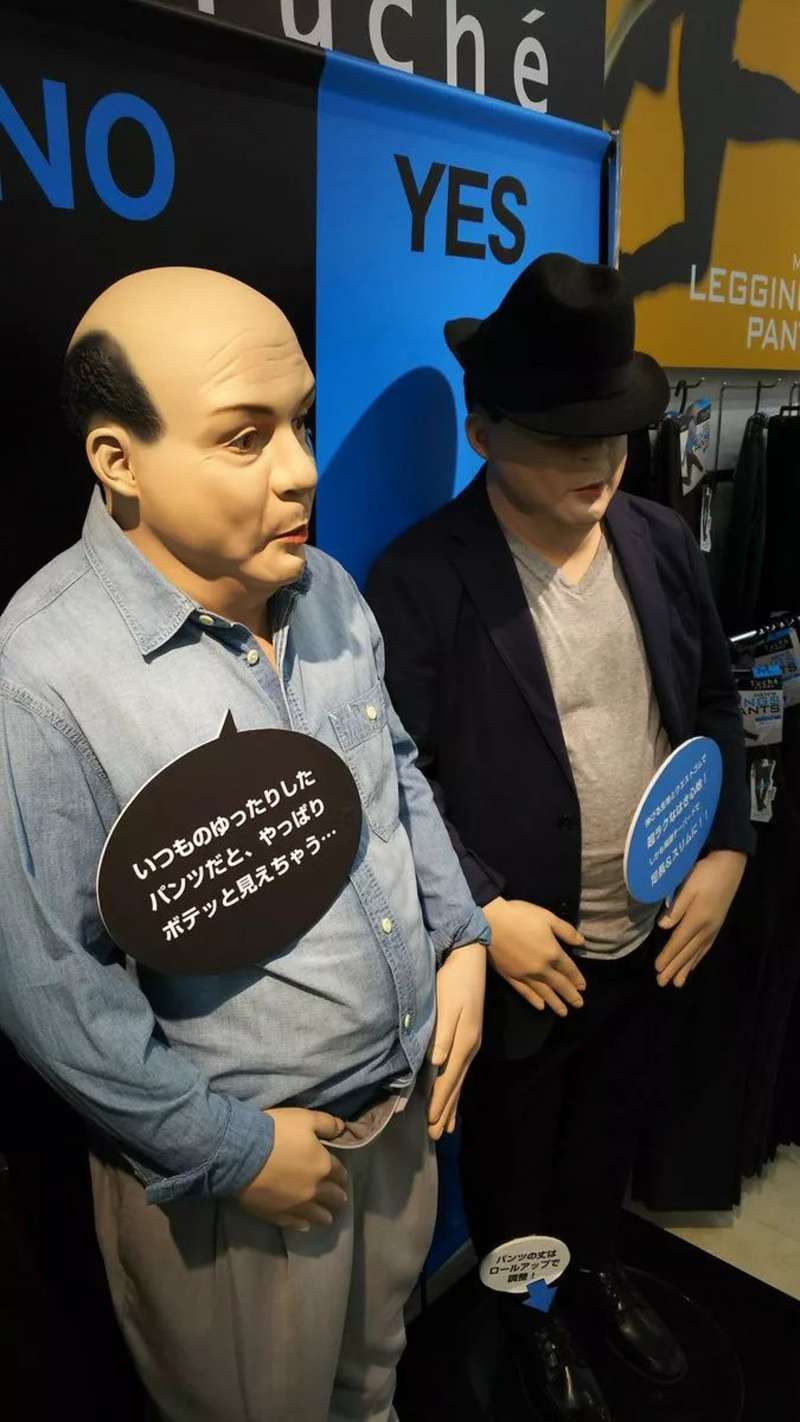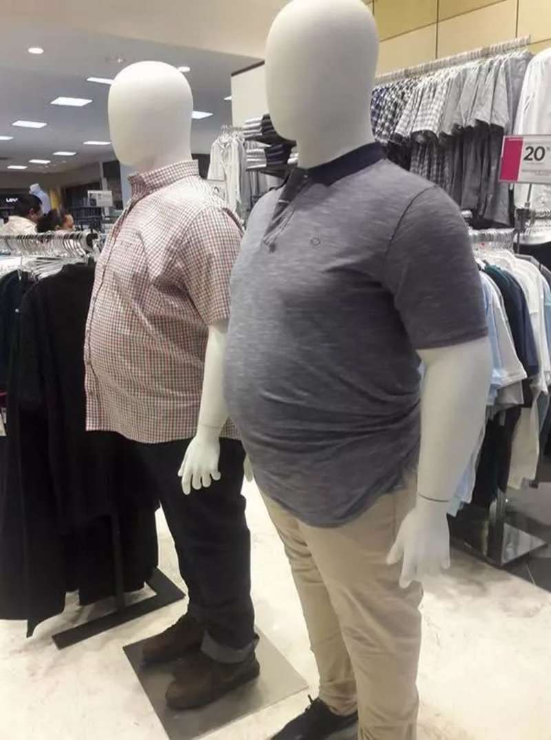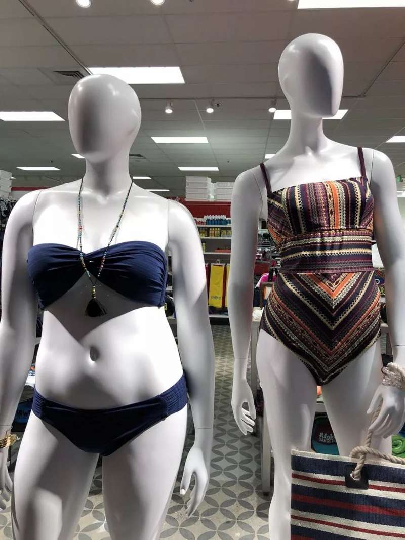 ▼看到商機的商家也紛紛採用了「非常規人形模特」,各種「不完美」模特紛紛上市。日本推特網友@M_T在逛街時發現的「發福模特」並發文:「這真的太貼心太實用了!」