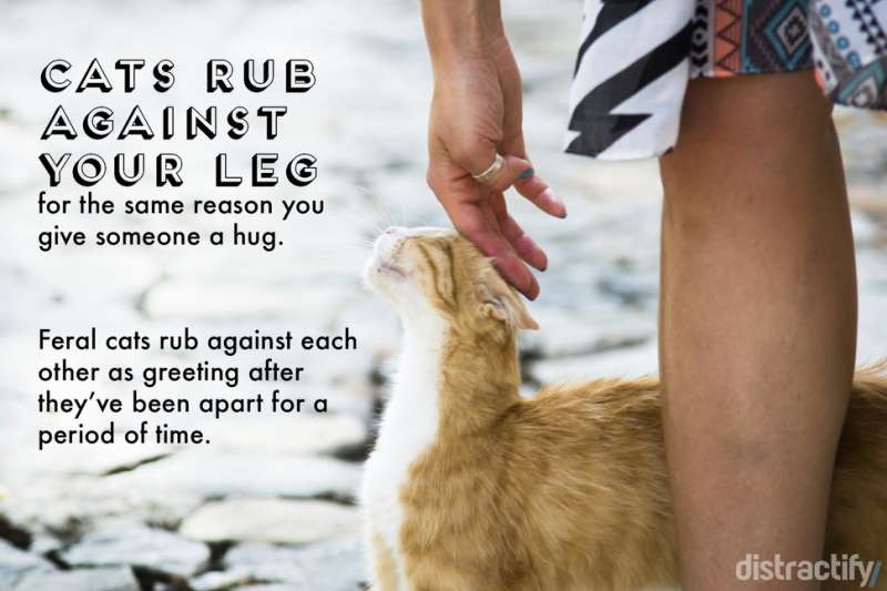 ▼貓咪在你的腳邊磨蹭,就跟你給其他人擁抱的感覺是一樣的。而野貓們也會互相磨蹭身體,意思就跟打招呼一樣。