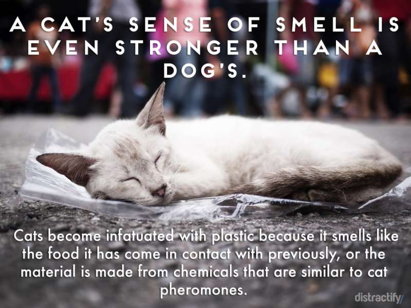 ▼貓咪的嗅覺比狗還要強,有時候牠們表現出喜歡塑膠袋是因為那個袋子可能有裝過牠們喜歡的食物,或者袋子中的化學成分與貓咪的荷爾蒙很像。