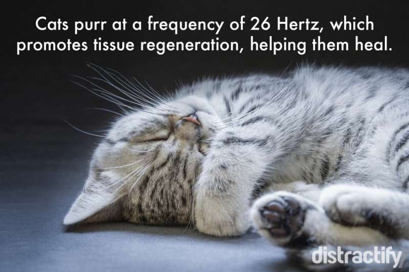 ▼貓咪發出咕嚕咕嚕的喘息聲頻率約為26赫茲,這個頻率可以幫助貓咪的傷口組織快速癒合。