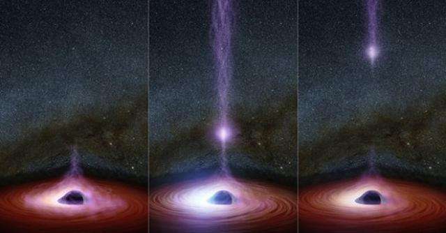 ▼至於黑洞為何會噴射出光的原因,他們一無所知。科學家只能推測可能是暈冕存在於黑洞的兩極,隨著旋轉軸分布,醞釀後再噴射出來。