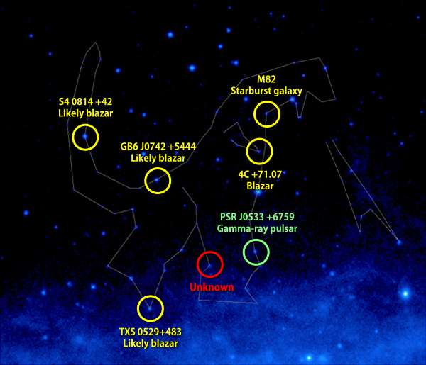 ▼可惜的是,新星座跟傳統星座不一樣,因為新星座的光芒是無形的,所以必須靠費米望遠鏡才能看到。