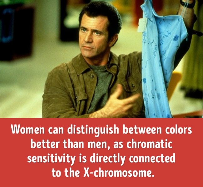 ▼女生分辨色彩的能力比男生要好,因為辨別顏色跟X染色體有關。