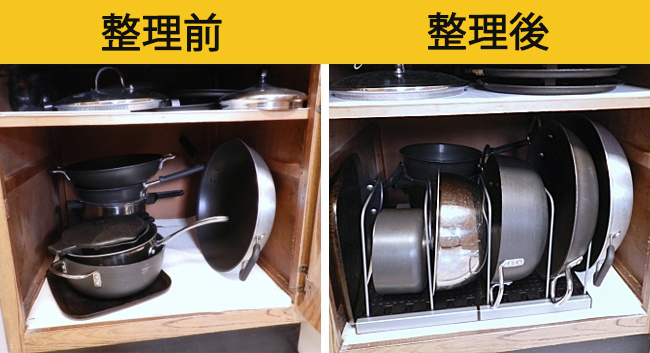 ▼13. 利用間隔讓鍋子排排站,取用更方便。