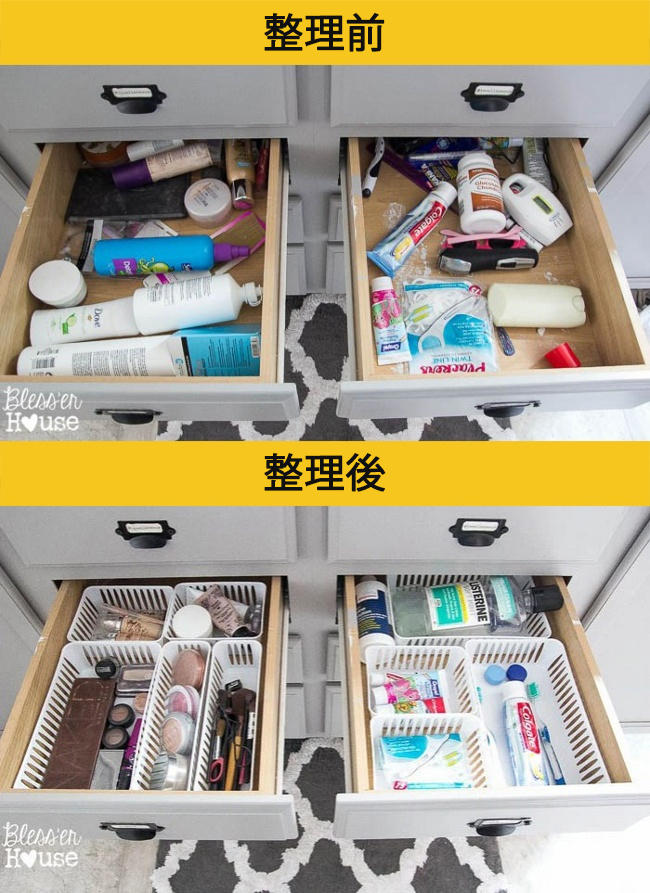 ▼4. 抽屜也可利用符合大小的收納籃,將物品分門別類。