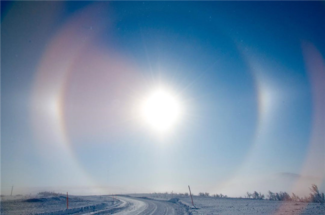 ▼空氣中的冰晶與陽光作用下產生的光暈