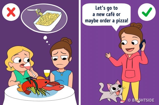 「我們去一間新咖啡廳,或者訂個披薩吧!」