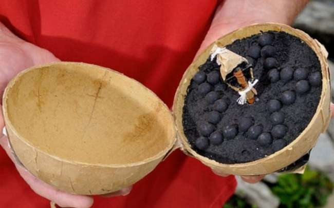 ▼最新環保型的煙花。當燈芯燃燒完畢,一種恆星狀的光會從黑球飛向天空。