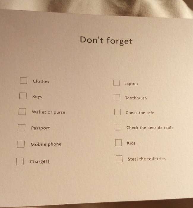 ▼這個清單可以讓你在退房前檢查自己是否忘了帶什麼。