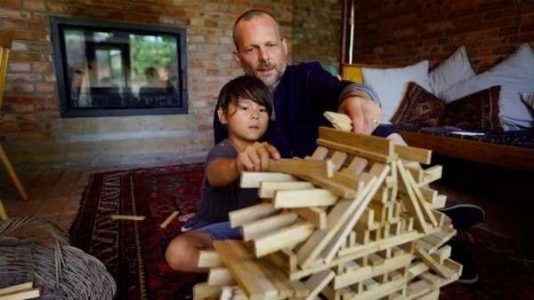 ▼Christian也會和兒子一起,玩一些自製的玩具。搭木條能夠鍛鍊想像力和動手能力,父子兩人都很喜歡。